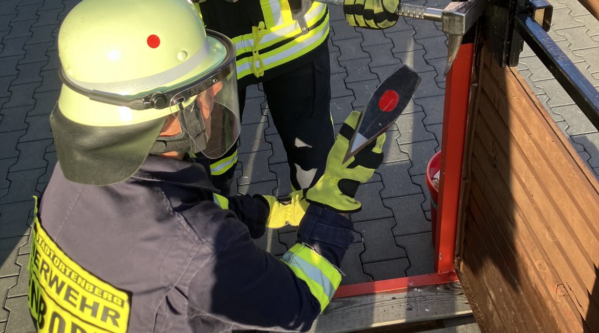 Auch das Thema Türöffnung kam nicht zu kurz. An einer eigens gebauten Übungstür konnten die Einsatzkräfte den gewaltsamen Zugang mit dem Halligan Tool üben – ein vielseitiges Werkzeug, das im Ernstfall schnelle Hilfe ermöglicht. In einem weiteren Szenario wurde die Türöffnung durch Ziehen des Schlosses mittels Ziehfix trainiert. Dabei kam es besonders auf präzises Arbeiten und ein gutes Gefühl für das Werkzeug an.