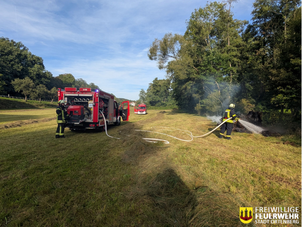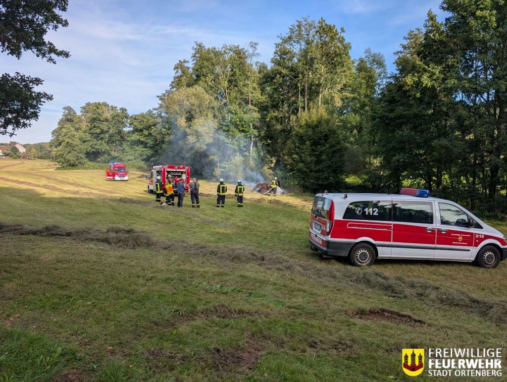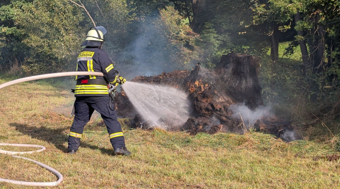 Vor Ort wurde ein angemeldetes Nutzfeuer vorgefunden, bei dem ein größerer Baumstumpf rauchte. Offene Flammen waren nicht zu sehen.
