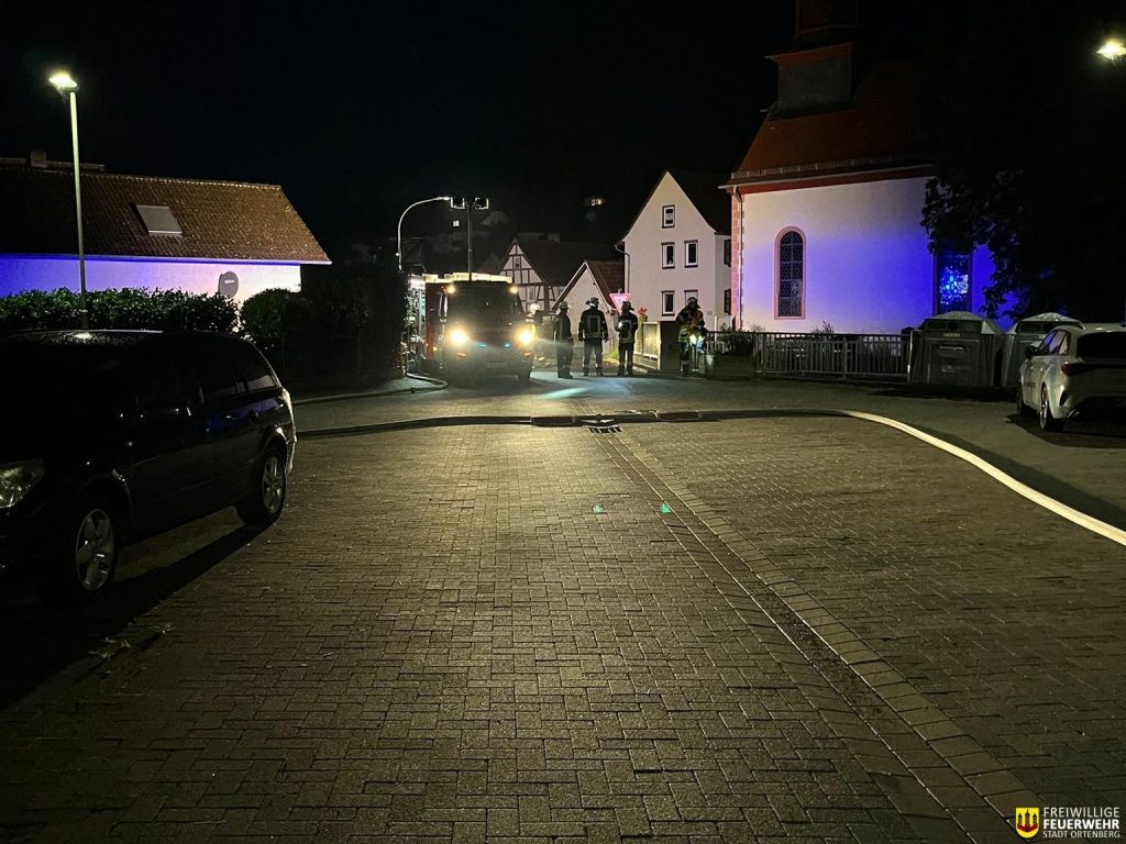 Das LF 10 (7/43) der Feuerwehr Bleichenbach stellte die Löschwasserversorgung über den nächstgelegenen Hydranten sicher. Zeitgleich errichteten die Feuerwehren Usenborn (5/48) und Gelnhaar (4/48) unter hohem Materialeinsatz eine lange Schlauchstrecke von der Kirche über die Straße „In der Burg“, vorbei am Friedhof bis zur Einsatzstelle. Unterstützt wurde dieser Aufbau durch eine Verstärkerpumpe des Bergheim 6/47 (TSF) in Höhe der Schäferstraße, um den nötigen Druck in der Förderstrecke zu gewährleisten.