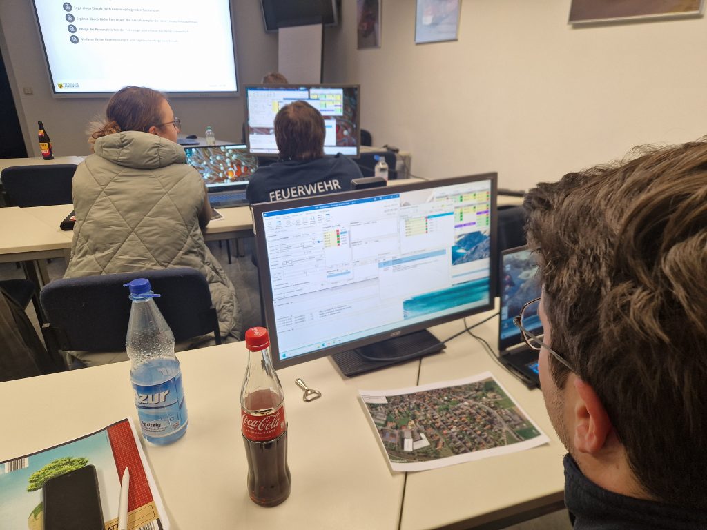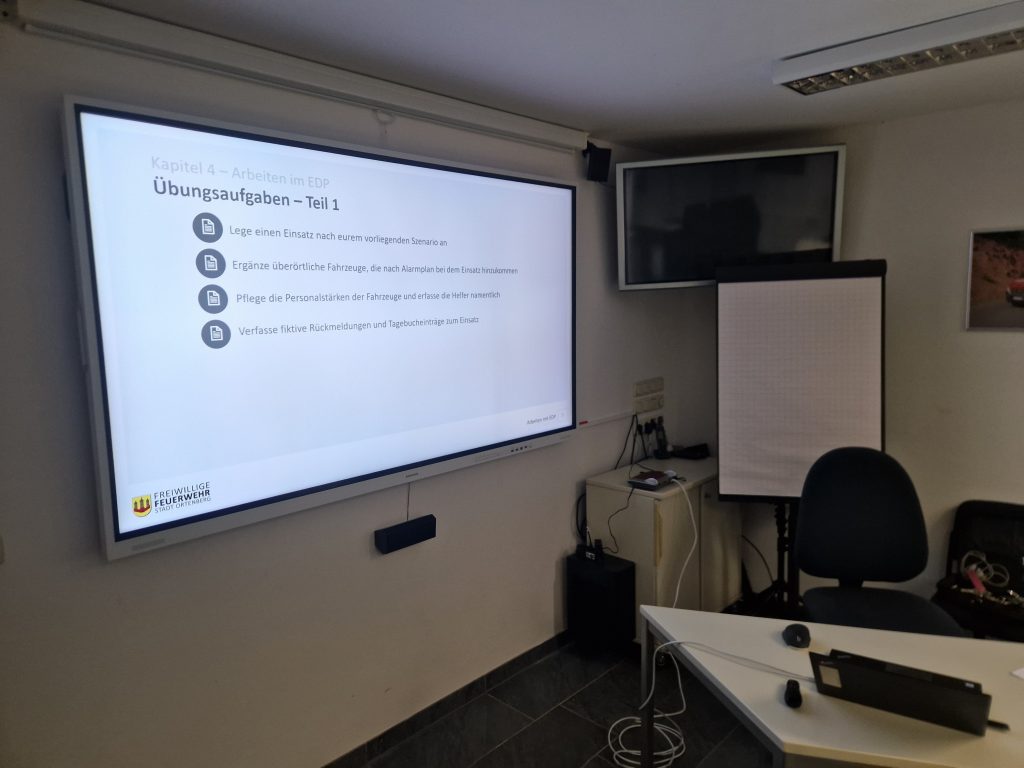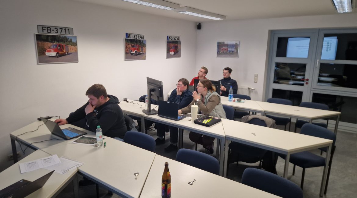 Thema des Abends war die Einweisung in die Führungsunterstützungssoftware EDP, welche unser digitales Tool zur Einsatzdokumentation ist. Es wurde den Teilnehmern der grundlegende Aufbau der Software erklärt, wie Einsätze anlegen, die Anzahl der Einsatzkräfte eintragen oder der Funkverkehr dokumentiert wird. Anschließend hatten die Teilnehmer die Möglichkeit, die gelernten Inhalte in einer Testumgebung des Systems an fiktiven Einsätzen zu üben.