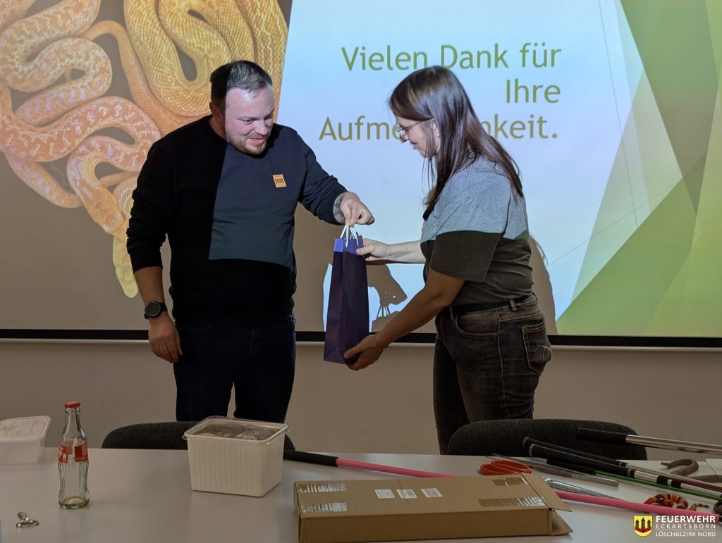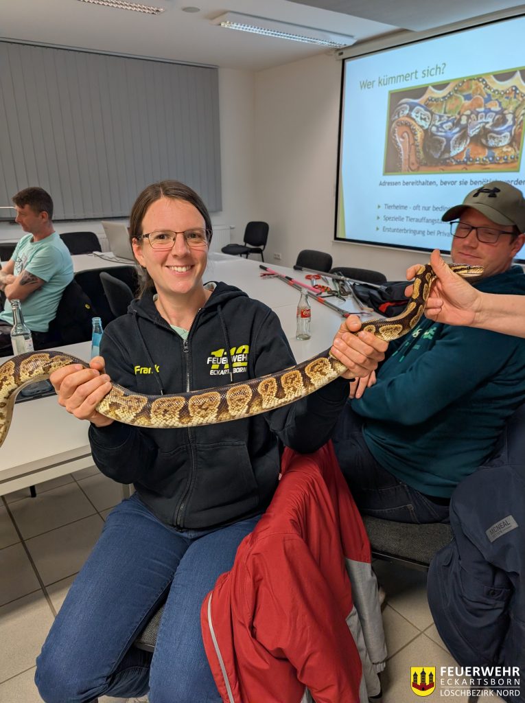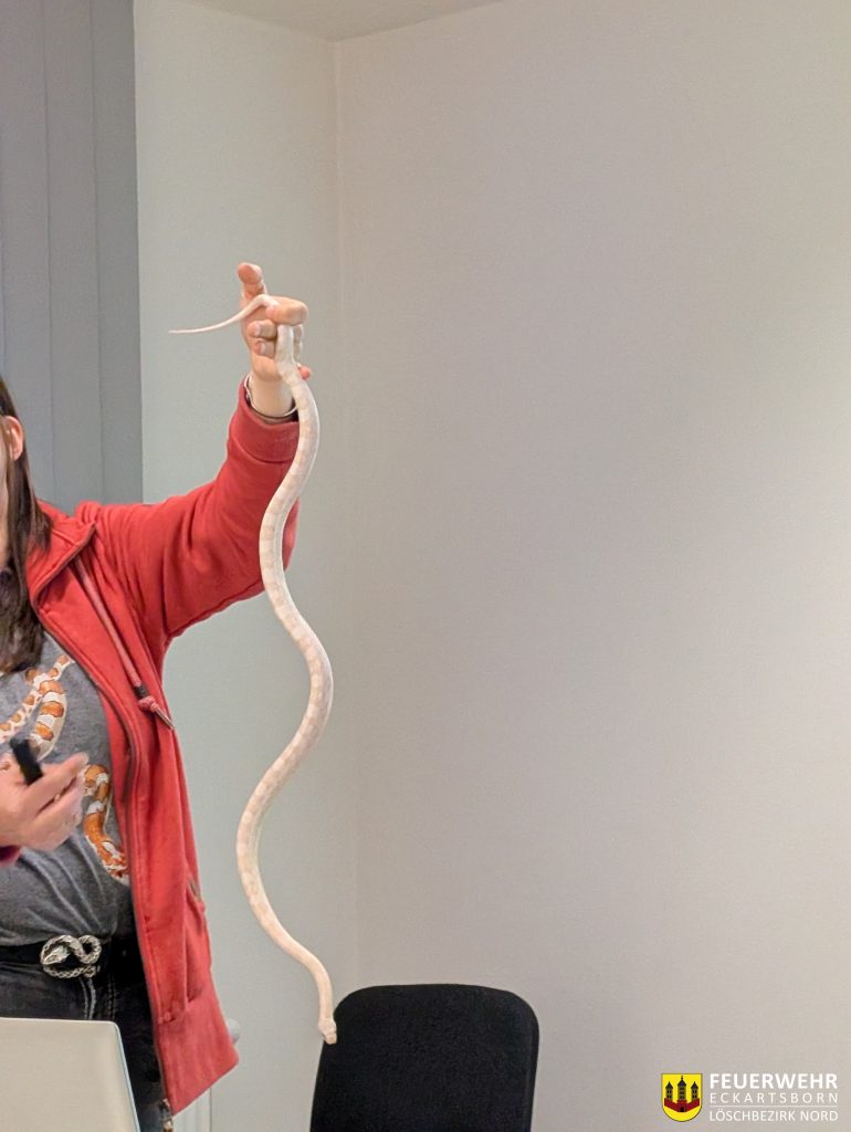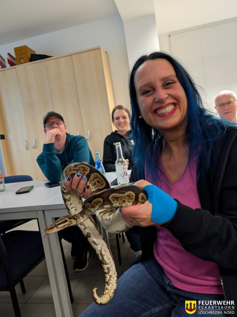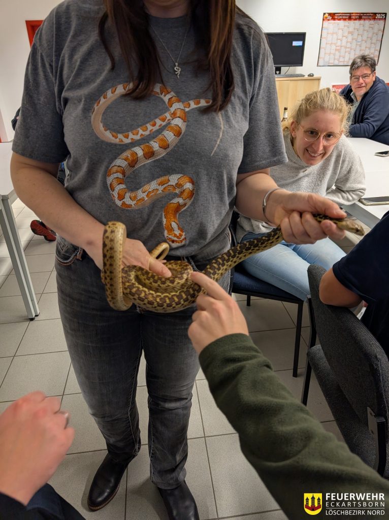 Mit einer besonderen und äußerst lehrreichen Ausbildungseinheit setzte der Löschbezirk Nord seine Fortbildungsreihe im Bereich der technischen Hilfeleistung fort. Zu Gast war Frau Katja Klier-Heil, die als erfahrene Referentin im Bereich Tierrettung und Reptilienkunde einen spannenden Einblick in die Welt der Schlangen bot.